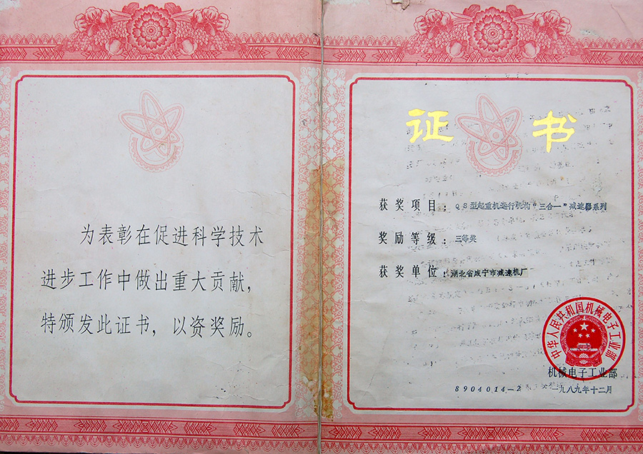 Third prize of science and technology progress award of QS series reducer Indust