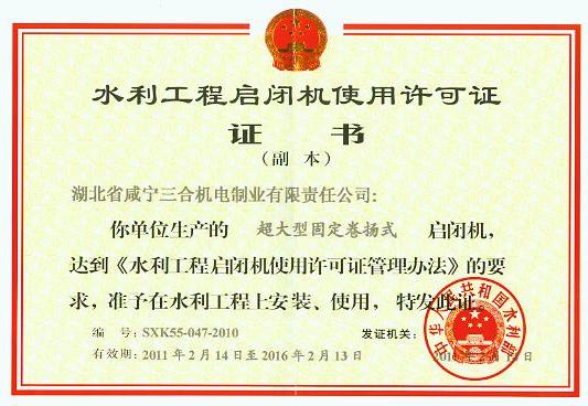 我公司超大型卷揚啟閉機的使用許可證的換證工作已完成